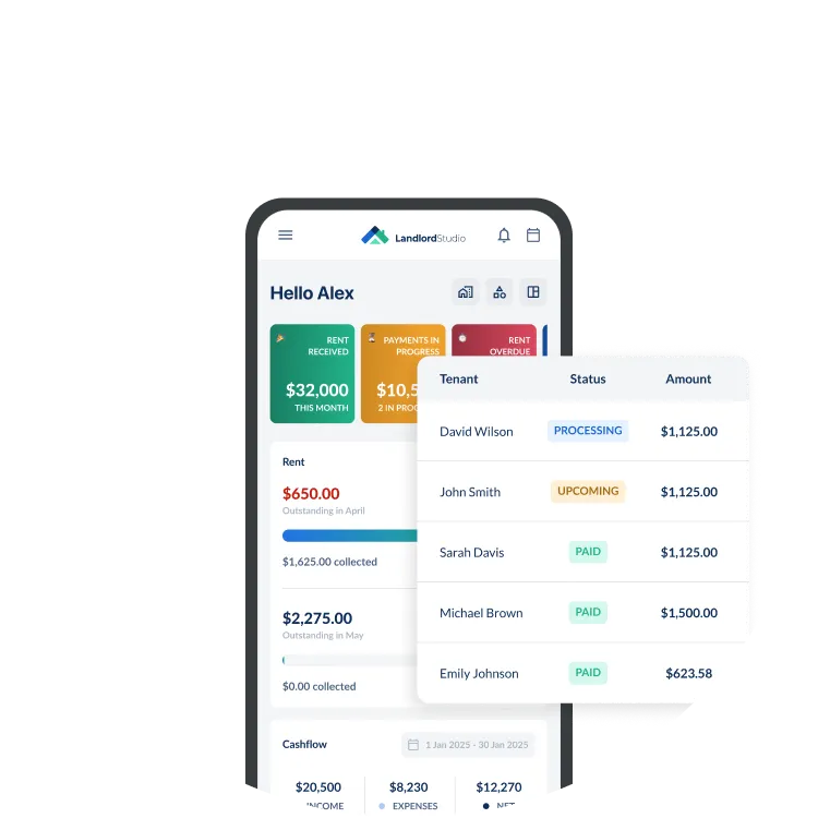 "Landlord Studio makes property management effortless – tracks rent, expenses & tenant comms. Great for 1 or many properties, my accountant loves it too.”