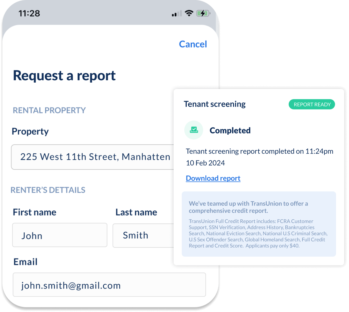 As soon as the potential tenant submits the screening report, you’ll get a notification. Simply log in on desktop or on the app to view the report.