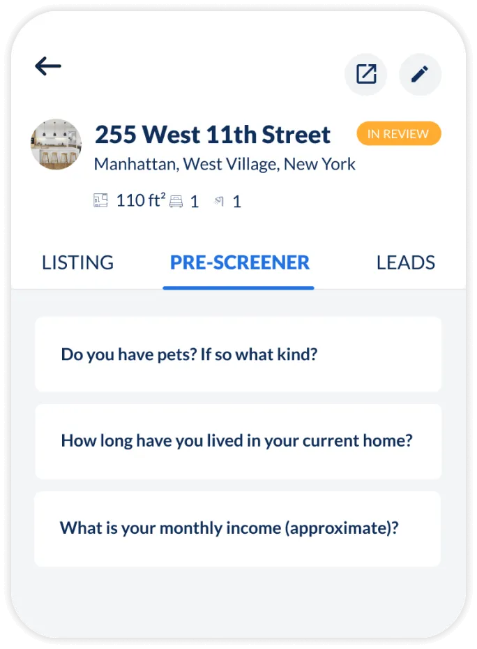 View your applicant’s prescreening answers, easily notify accepted applicants, and run a comprehensive tenant screening report and background check with a few quick taps.